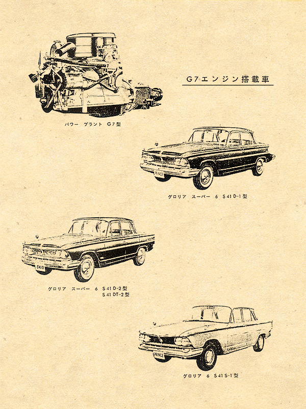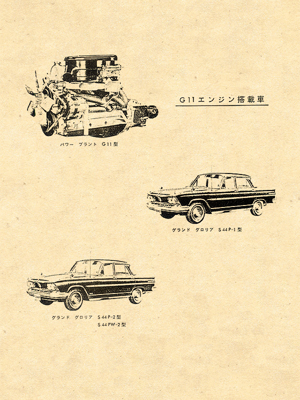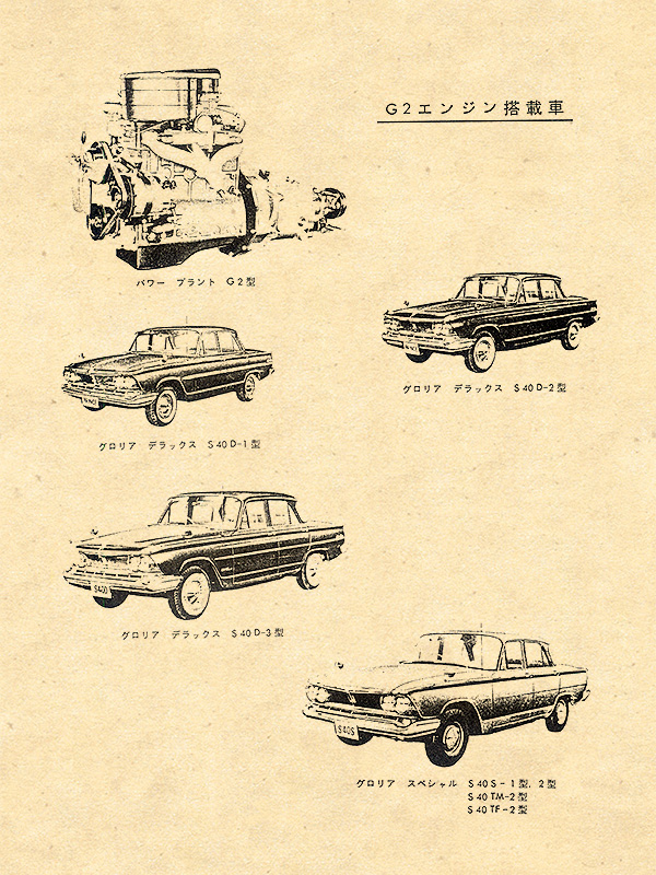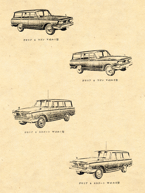 昭和37年(1962)にデビューされたS4系のシリーズはデラックス(4気筒)、スーパー6、グランドグロリア、エステート、ワゴンを揃えていました。
